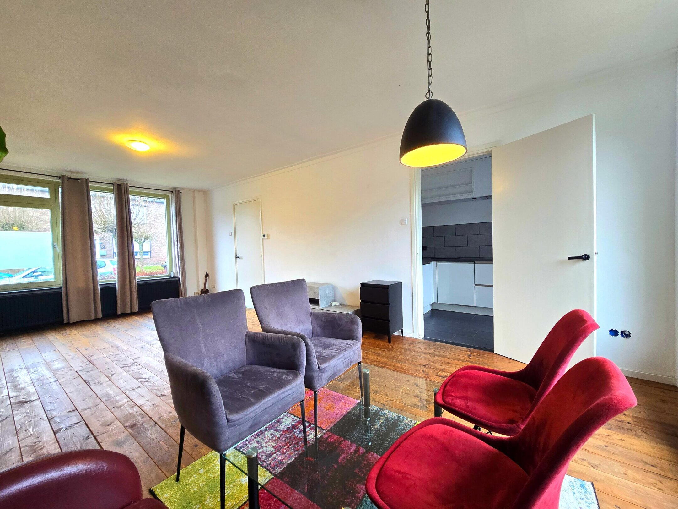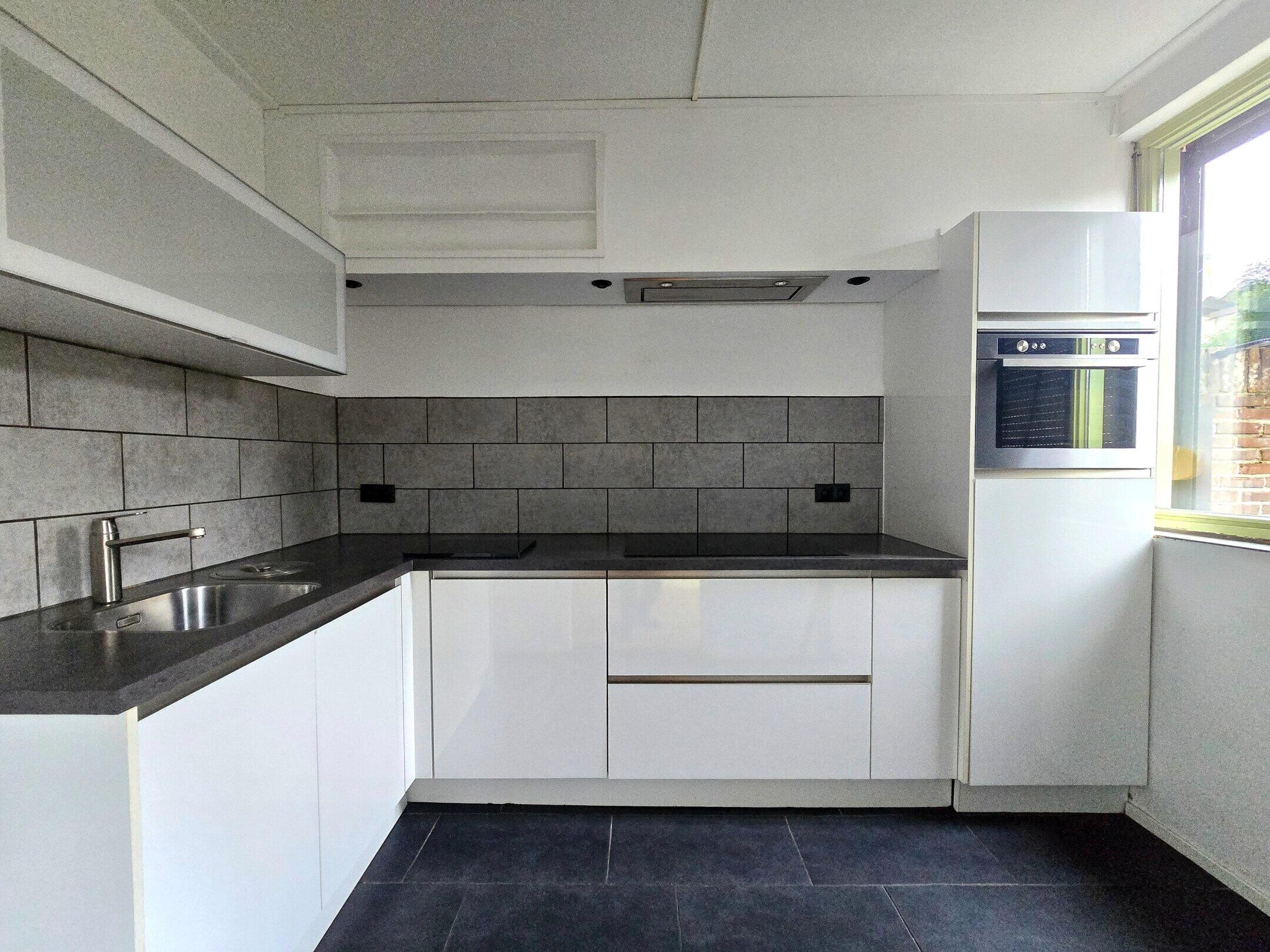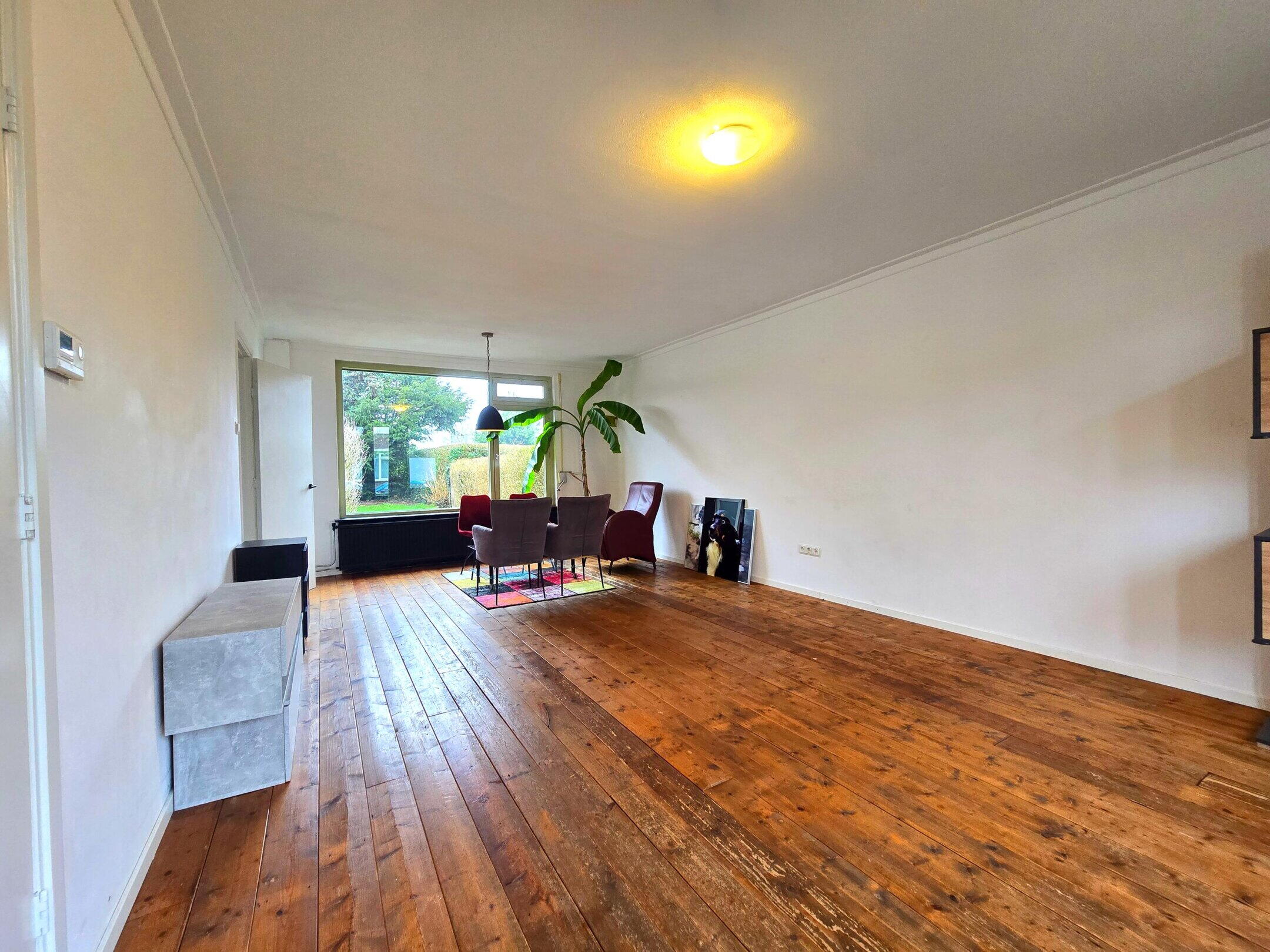 Via de entree komt u binnen in de hal, die fungeert als een praktisch en overzichtelijk ontvangstpunt van de woning. Vanuit hier heeft u toegang tot de woonkamer, het toilet, de meterkast, de trapopgang naar de eerste verdieping en een separate deur naar de kelder. De woonkamer heeft een oppervlakte van circa 30 m² en biedt voldoende ruimte voor zowel een comfortabele zithoek als een eethoek. Grote raampartijen zorgen voor een prettige lichtinval en een open, aangename sfeer, mede dankzij de houten plankenvloer. Dankzij de rechthoekige indeling is de ruimte eenvoudig en efficiënt in te richten. De keuken bevindt zich aan de achterzijde van de woning en heeft een oppervlakte van circa 7 m² en is in 2020 vernieuwd. Deze is overzichtelijk opgesteld en beschikt over voldoende werk- en kastruimte en heeft een 4-pits inductiekookplaat, afzuiging, spoelbak, inbouw koelkast, -vaatwasser en een mooie inbouw combi-magnetron. Vanuit de keuken heeft men toegang tot de achtertuin.